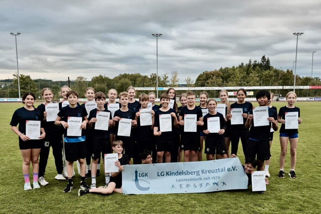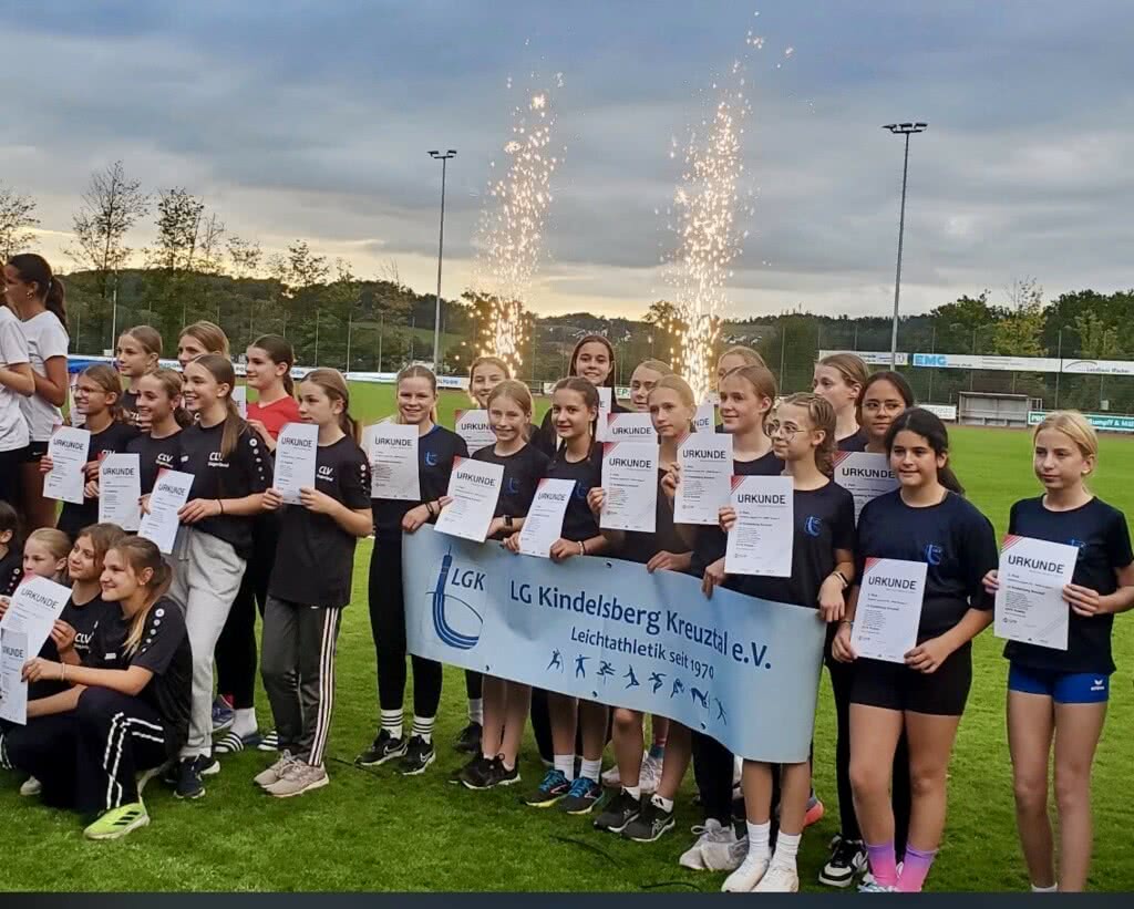 Die M/W U14 der LG Kindelsberg Kreuztal mit den Trainerinnen Regina Freund und Janine Schönenbrücher